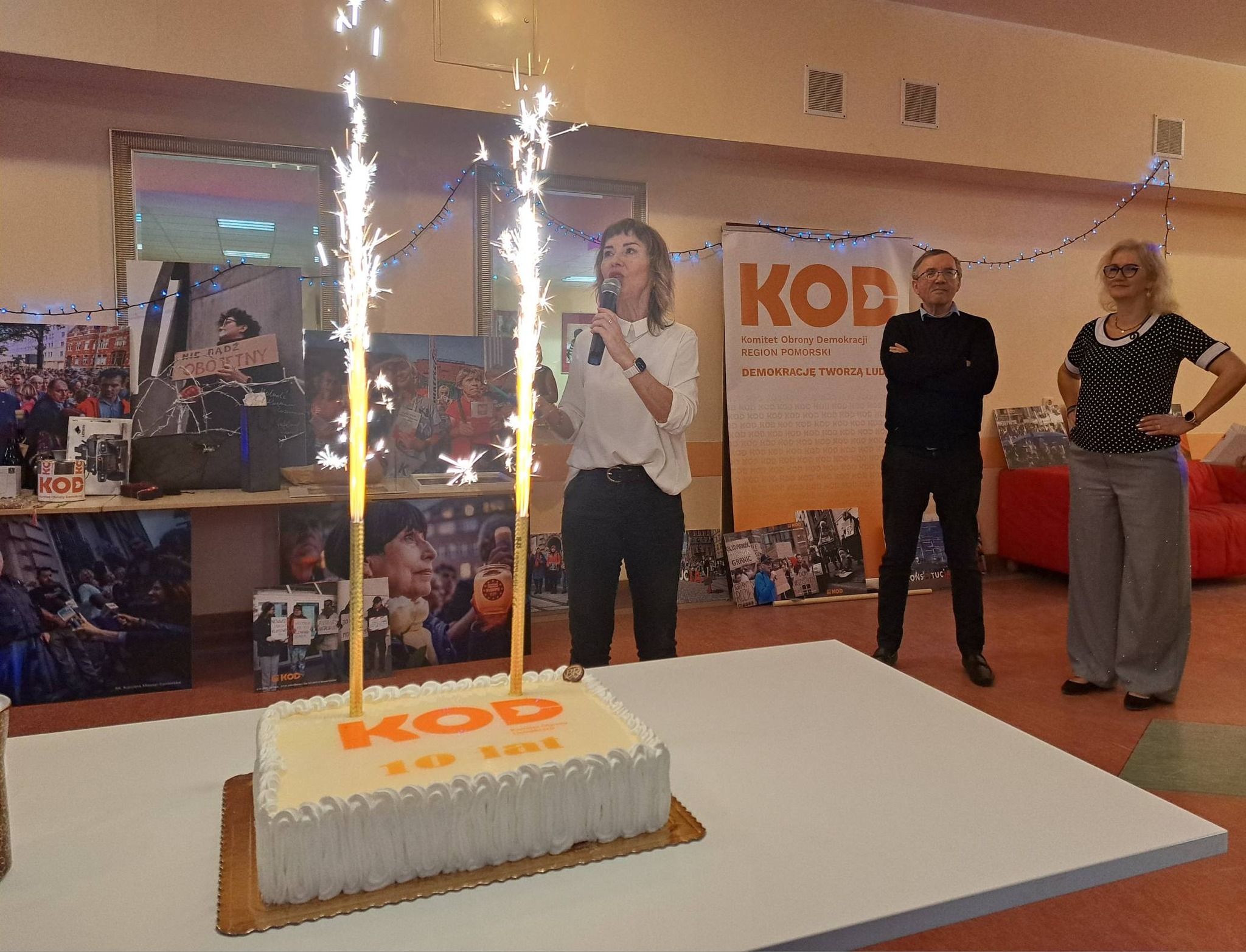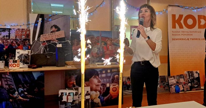 Pomiędzy oficjalnymi częściami wieczoru była zabawa, tańce, rozmowy, wspomnienia. W kulminacyjnym momencie balu nie zabrakło znakomitego jubileuszowego tortu z fontanną iskier. To był wspaniały wspólny KOD-owy wieczór prowadzony z dużą dozą humoru przez przewodniczącą pomorskiego regionu Rafalak Sława.