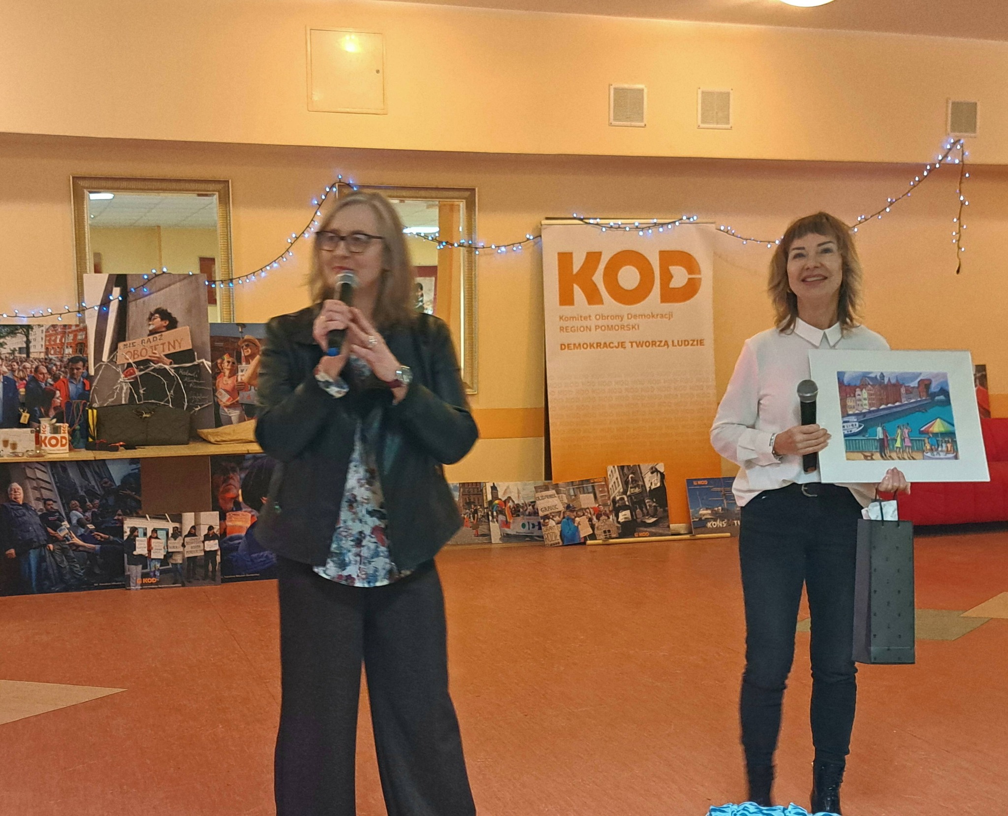 Jak co roku, tradycyjnym punktem pomorskiego balu była licytacja przyniesionych przez uczestników wieczoru fantów oraz zdjęć prezentowanych na grudniowej wystawie z okazji dziesięciolecia #KOD w Przestrzeni Sztuki WL4 Mleczny Piotr. Tym razem z przeznaczeniem dochodu z licytacji na cele statutowe.