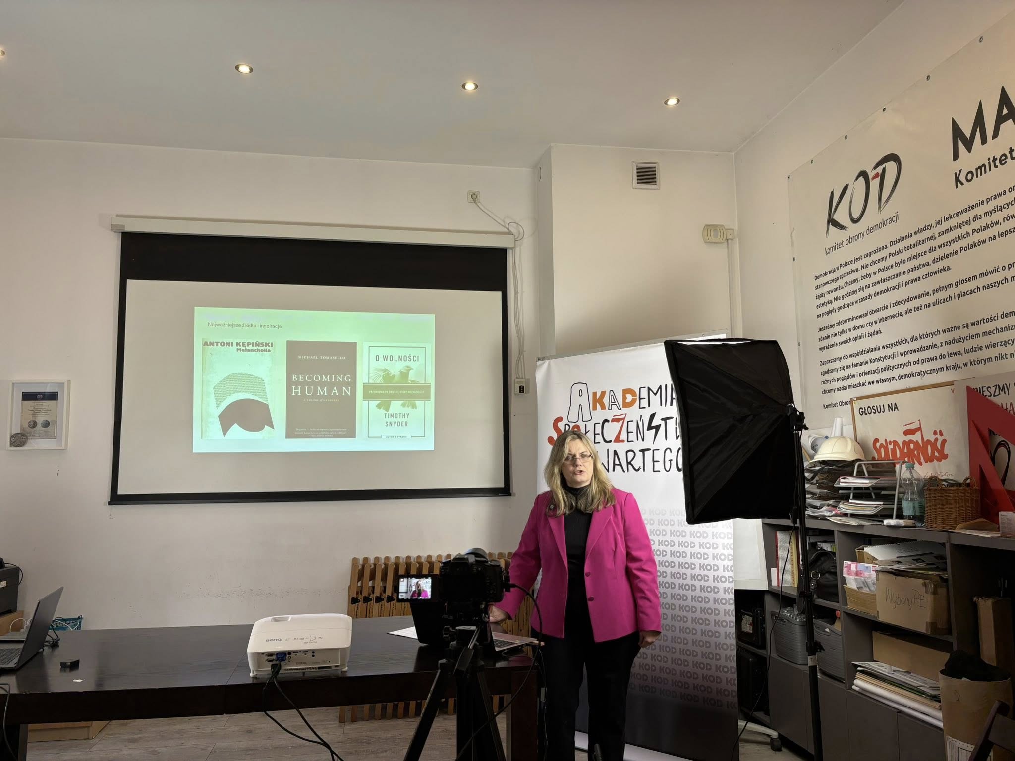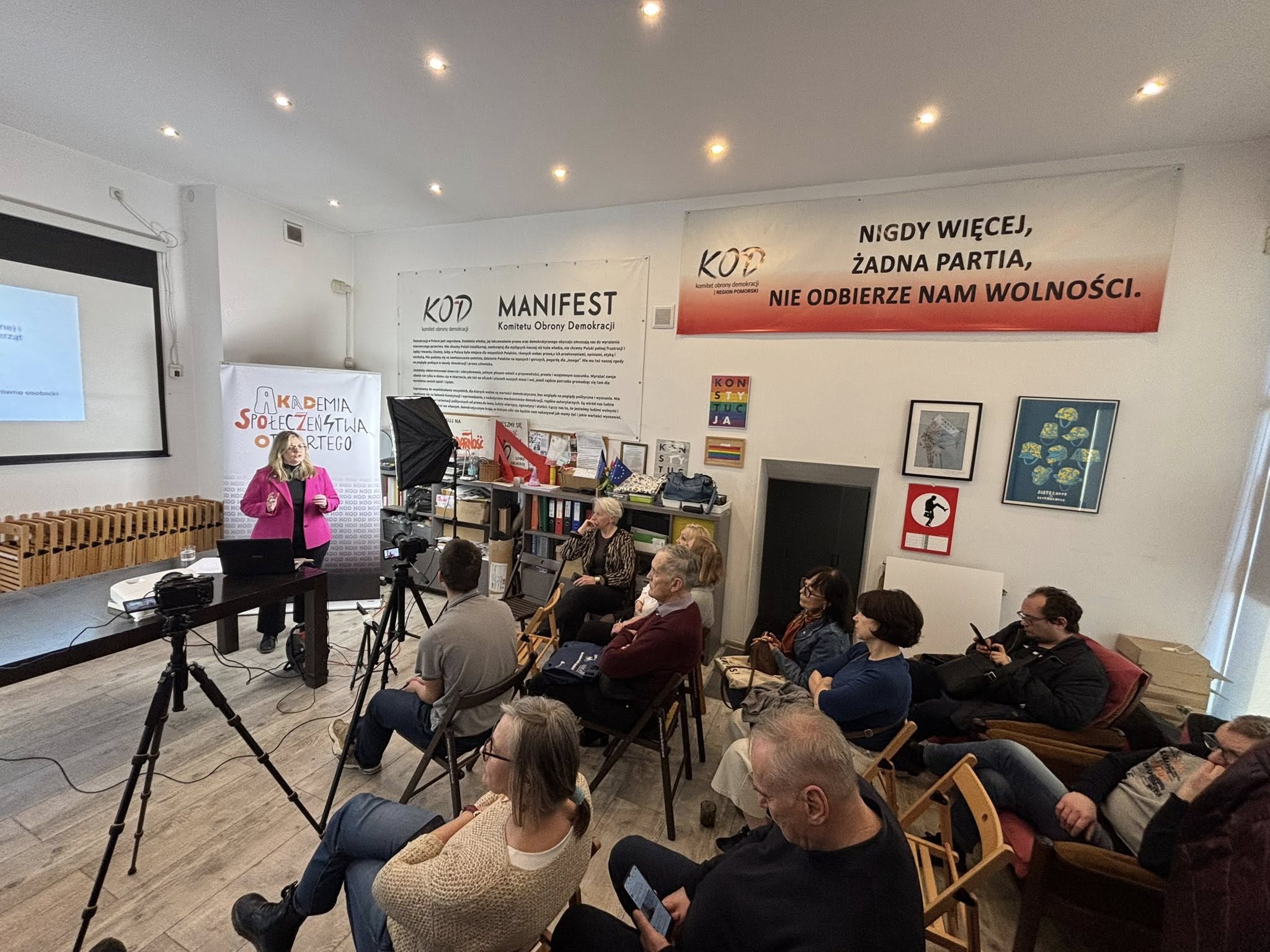 09.04.2026 w biurze Komitetu Obrony Demokracji w ramach Akademii Społeczeństwa Otwartego semestr VII, odbył się wykład dr Karoliny Janczukowicz. Tematem spotkania był "Konserwatyzm i liberalizm jako stan umysłu i jako kondycja społeczeństw".
