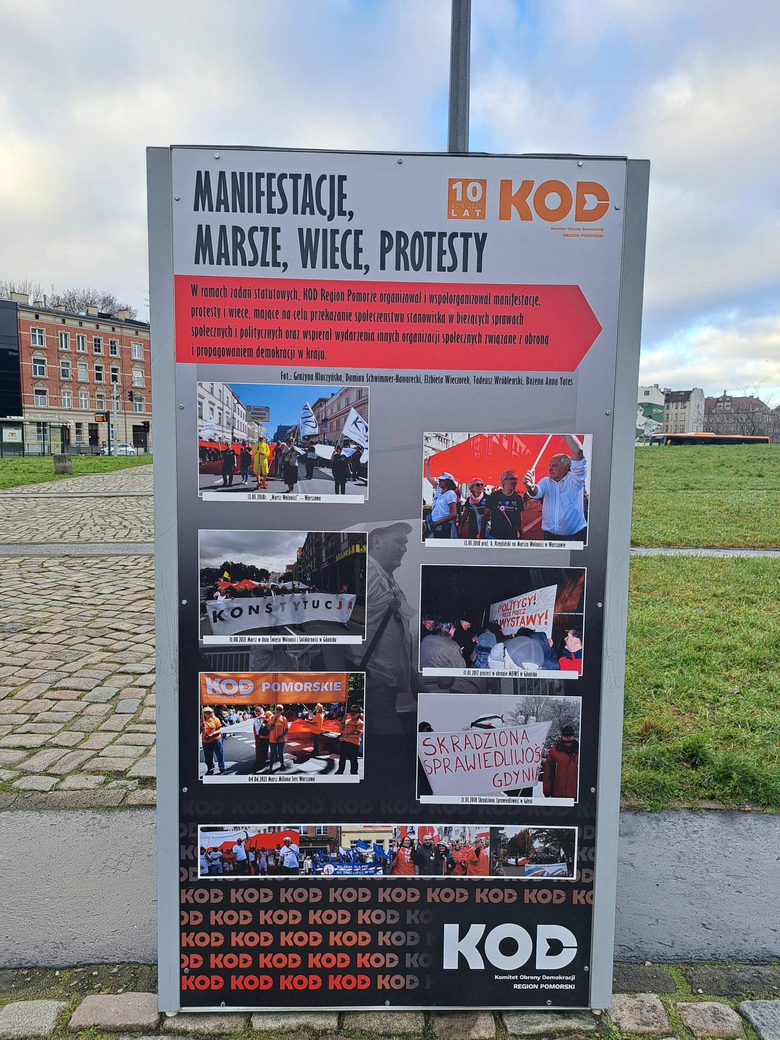 Z okazji 10-lecia stowarzyszenia Komitet Obrony Demokracji, pomorski region #KOD dzisiaj 20 grudnia 2025 na Placu Solidarności w Gdańsku otworzył wystawę "8 plansz - Wystawa Plenerowa KOD" składającą się z osiemnastu tematycznie poukładanych plansz dokumentujących działania Komitet Obrony Demokracji Region Pomorze w ostatniej dekadzie.